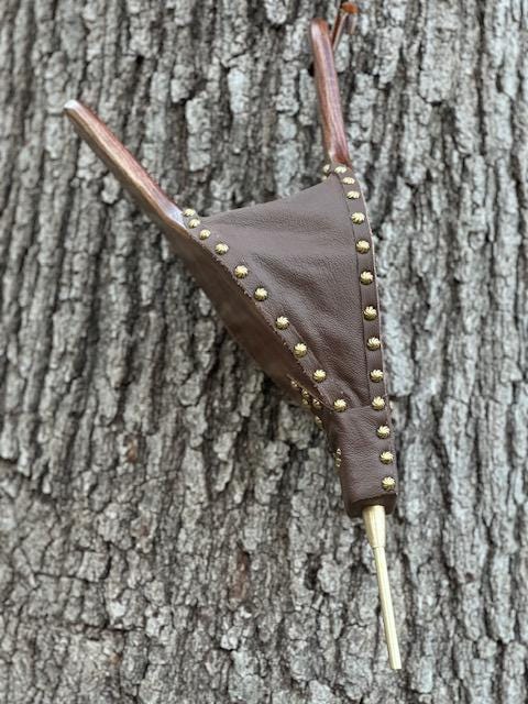 A sturdy hinge beneath the leather boot ensures smooth, reliable operation for years to come. A leather hanging strap is threaded through the handle, making it easy to store or display your bellows when not in use.