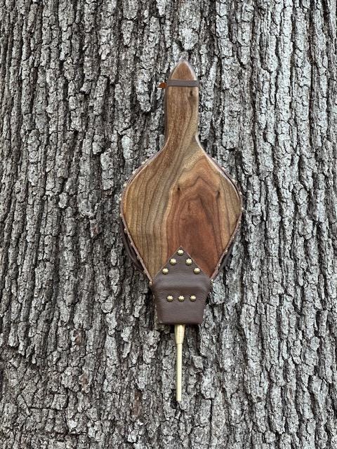 Bring understated elegance and function to your hearth with these one-of-a-kind, handcrafted walnut fireplace bellows. This piece showcases the natural beauty of the wood itself — featuring intricate grain patterns with flowing streaks of rich brown and subtle gray tones that make this bellows truly unique.