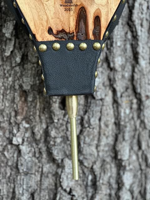The hickory wood features striking natural grain along with numerous inclusions, knots, and character marks that make this piece completely unique. These natural variations add depth, texture, and visual interest, giving the bellows an authentic rustic charm that feels right at home beside any fireplace, wood stove, or fire pit.