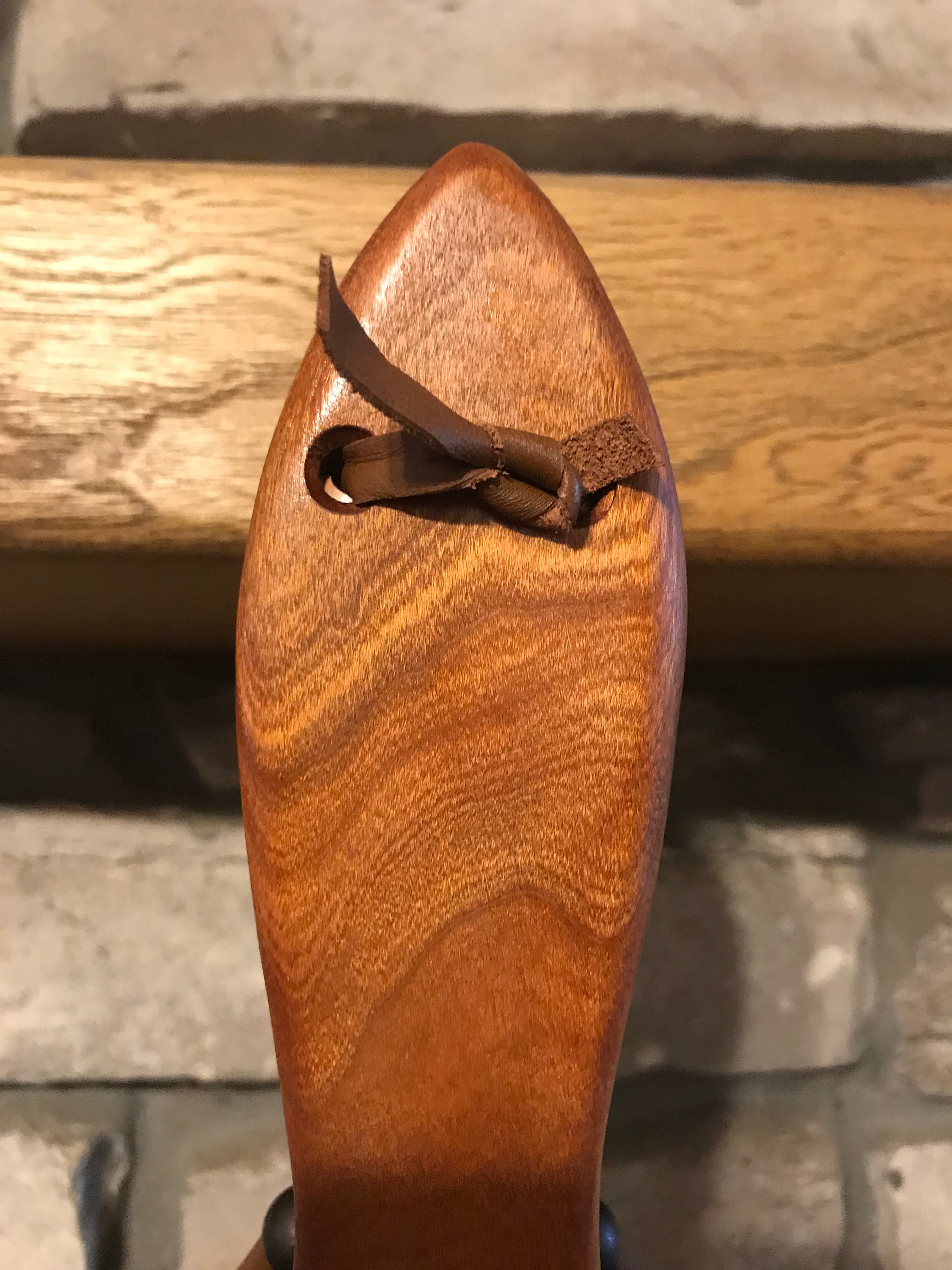 These bellows were crafted from cherry with a walnut inlay on the front. They are about 2 inches shorter than our regular sized bellows, but still deliver a big puff of air to your fire. Finished with a tung oil rub, they are approximately 17 inches long and 7 inches wide. The leather is light brown, and the tacks are bronze colored. A sturdy brass hinge connects the paddles under the leather boot, which features a brass nozzle. These bellows are made to last for generations, while bringing a sense of history to your hearth. A few puffs from these bellows will help get a fire started in your fireplace, wood stove or fire pit.